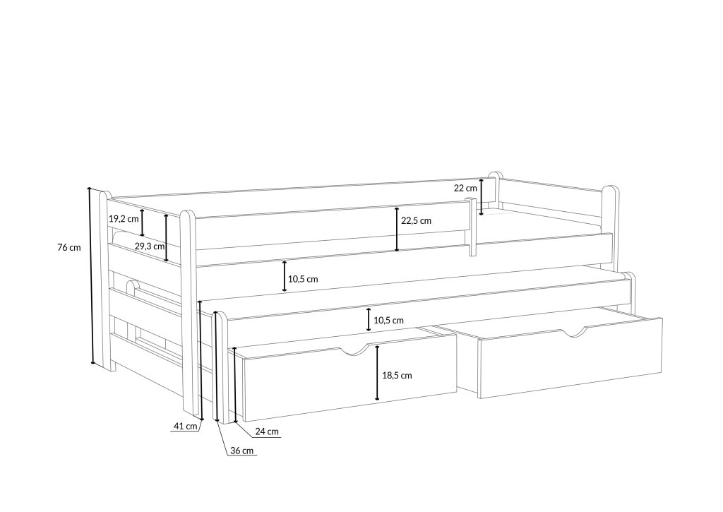 - Konstrukcja łóżka: Drewno sosnowe 100%