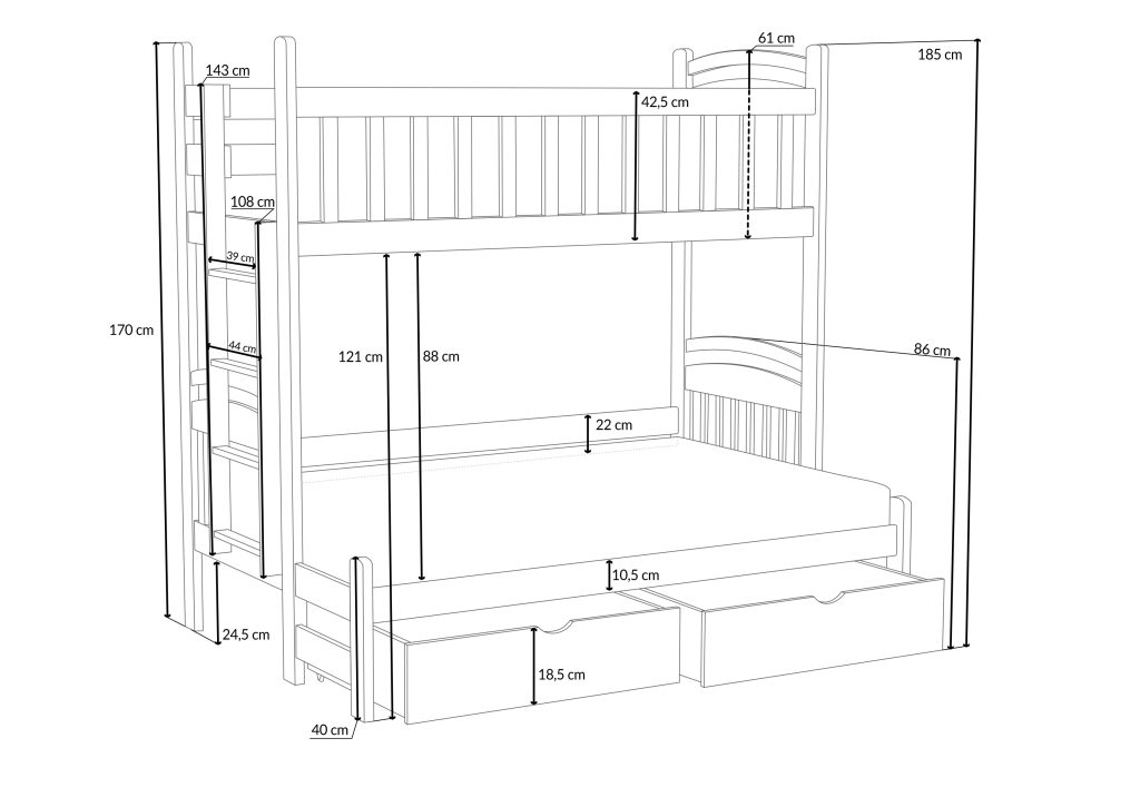 - Konstrukcja łóżka: Drewno sosnowe 100%
