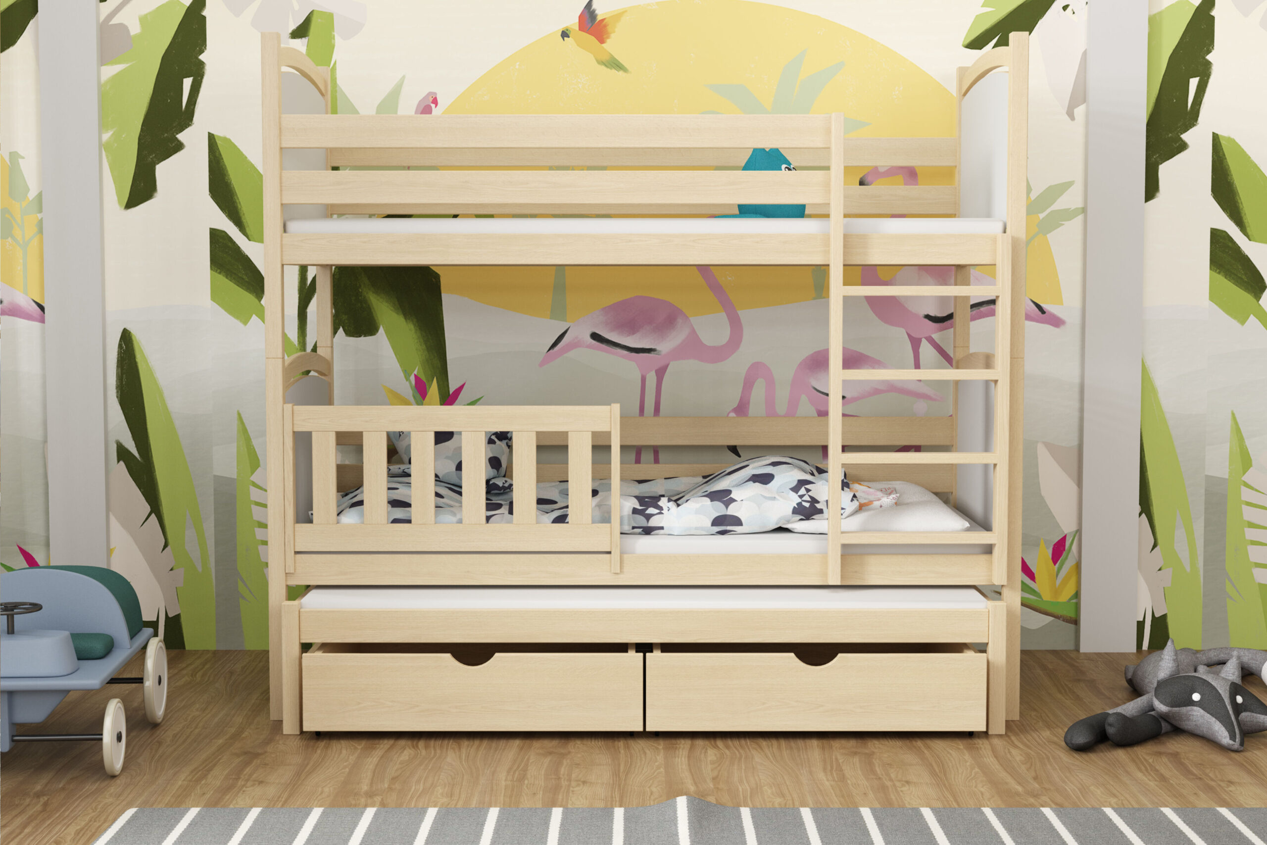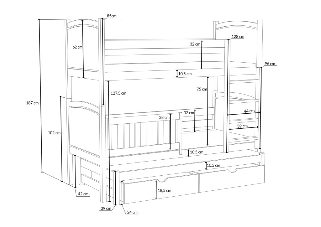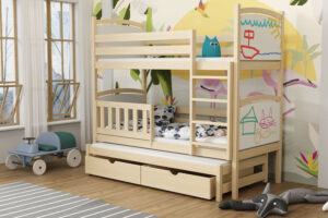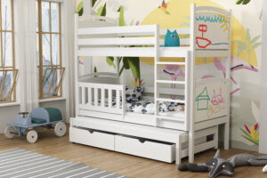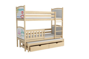 Anakin to model, który możesz wybrać nie tylko w wielu wersjach kolorystycznych. Możesz zdecydować się także na szuflady. Znajdują się one pod dolną częścią, zaś ich pojemność jest na tyle duża, że bez problemu schowa się do nich pościel ze wszystkich trzech miejsc do spania. Zmieszczą się tam również inne rzeczy, ubrania itp. Dzięki temu możesz odciążyć szafę, a ponieważ każda szuflada przesuwa się na kółkach, masz pewność, że nie zarysuje podłogi.