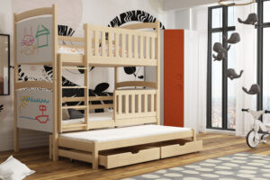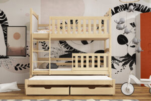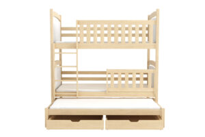 Łóżko Charlie zostało wykonane z drewna sosnowego. Jest to materiał niezwykle odporny na uszkodzenia – o które przy aktywnych dzieciach nietrudno – oraz wpływ niskich i wysokich temperatur, a także wilgoć, pleśnie itp. Dzięki temu masz pewność, że posłuży przez długo czas i jest inwestycją w długie lata wygodnego użytkowania. Spasowanie elementów stoi na wysokim poziomie, co wzmacnia stabilność całej konstrukcji.