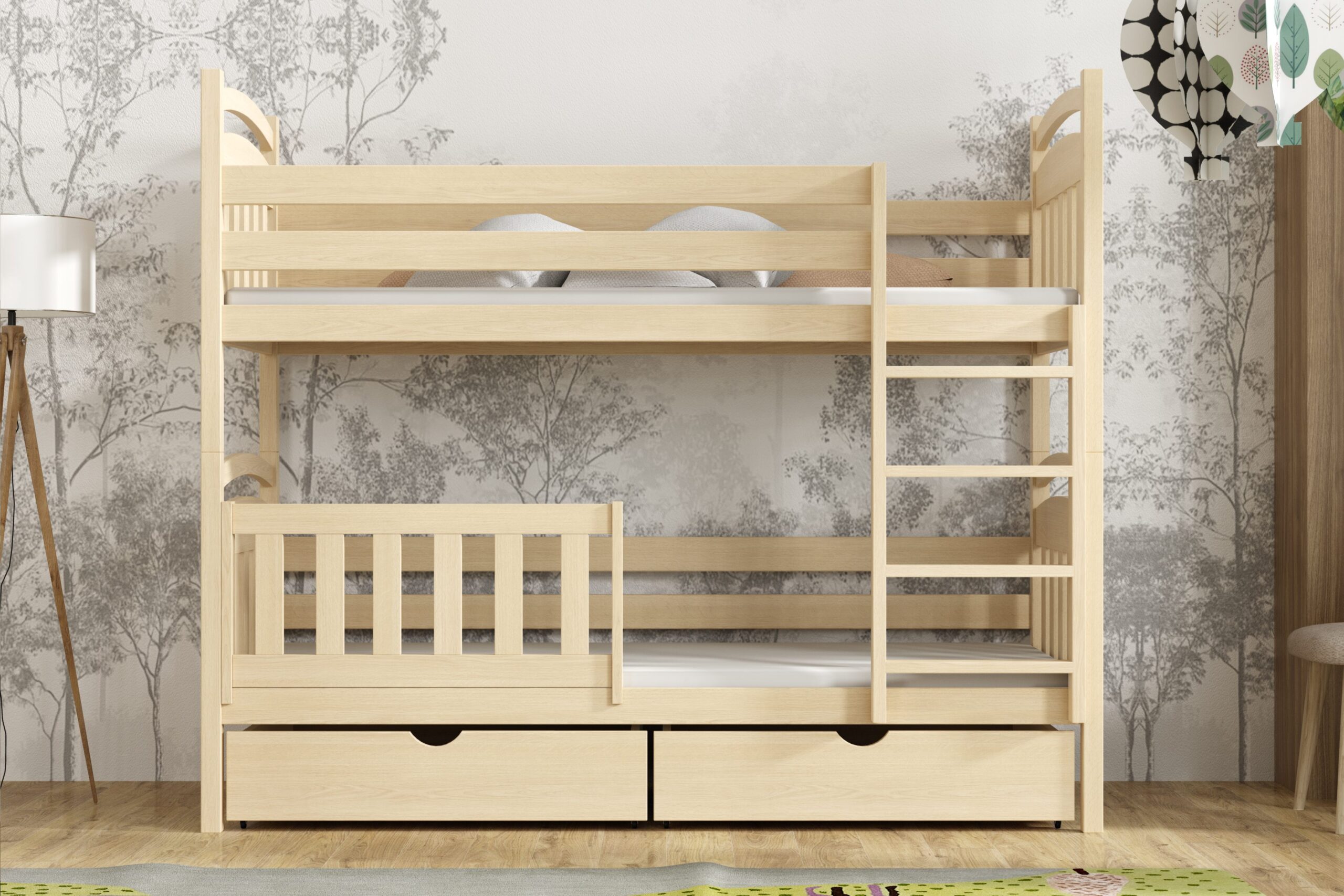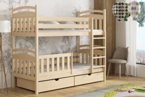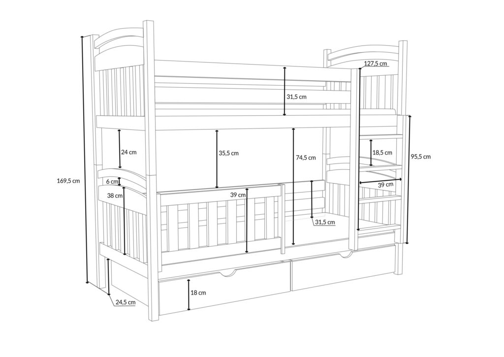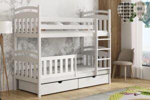 Feliks to nie tylko miejsce do spania, ale również przechowywania rzeczy. Dwie szuflady umieszczone w dolnej części łóżka doskonale nadają się na ukrycie pościeli za dnia. Są one na tyle pojemne, że bez problemu przechowasz tam również inne rzeczy. Takie rozwiązanie odciąży szafy i szafki stojące w pokoju dzieci – zyskasz dzięki nim dodatkową przestrzeń, która nie zajmuje miejsca. Jeśli jednak na brak miejsca nie narzekasz, możesz zdecydować się na wersję bez szuflad.