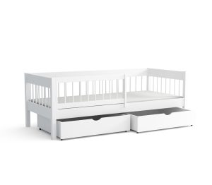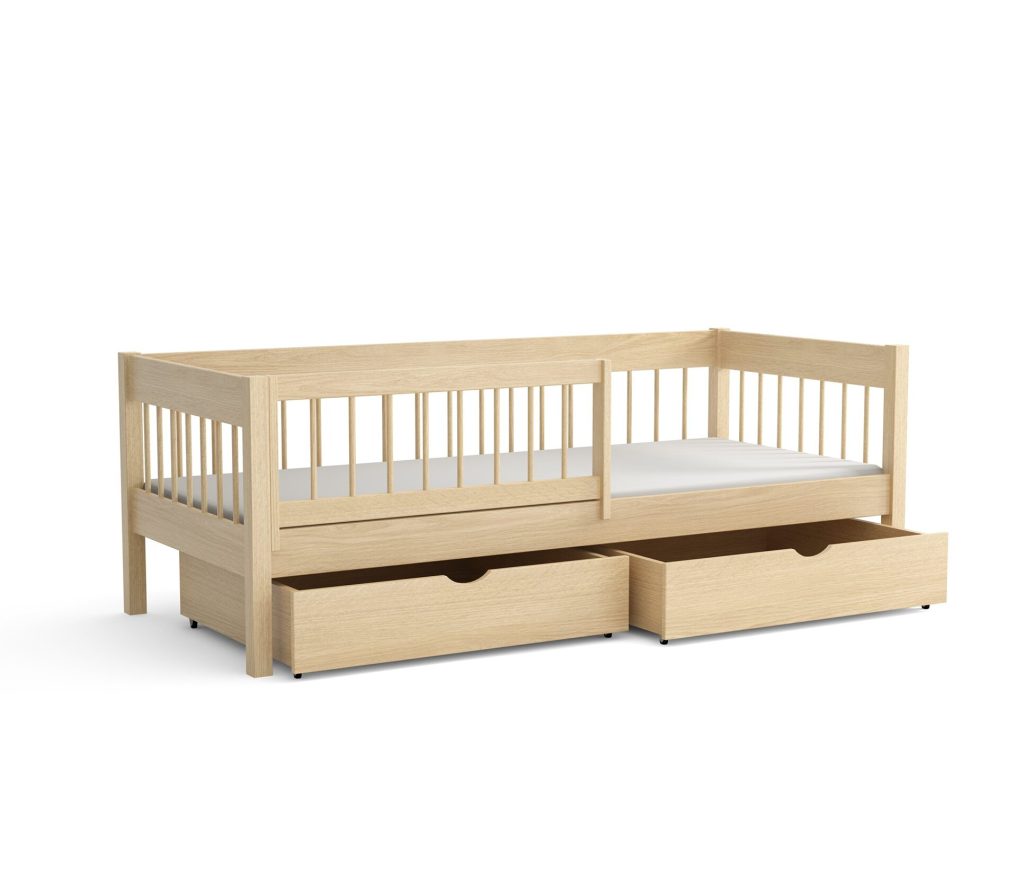 Model Moonlo to funkcjonalna wersja klasycznego łóżka dziecięcego – niska, stabilna i wzbogacona o dużą szufladę, która idealnie sprawdzi się jako przestrzeń do przechowywania pościeli, zabawek czy sezonowych ubrań. To praktyczne rozwiązanie dla rodziców ceniących porządek i wygodę, bez rezygnowania z minimalistycznego designu.